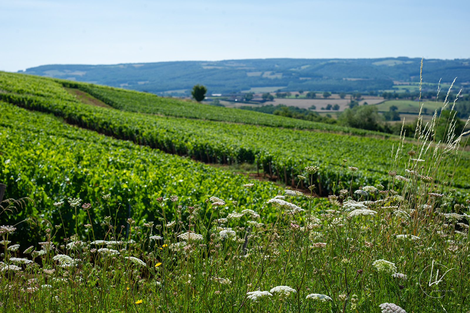 Les vignes s'étendent sur des coteaux escarpés au pied du Château de Couches.