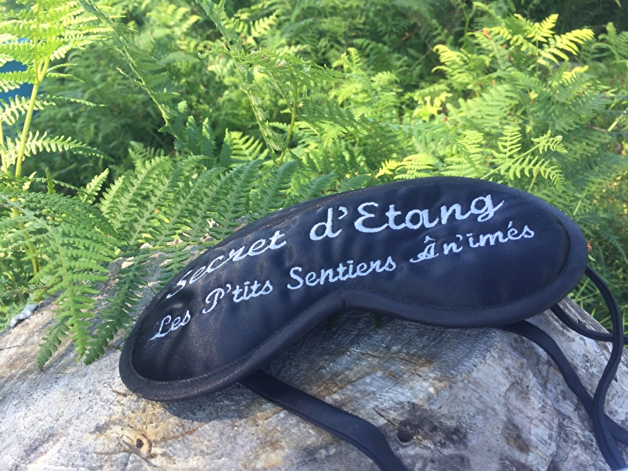 Guided by Perrine and Pierrot, we head for "Monsieur l'étang", where our hosts will let us in on a few of their secrets... A little corner with a bohemian atmosphere awaits us on the water's edge: cushions on a straw bale, dream catcher, wind chimes... Perrine invites us to sit down and blindfold ourselves. She whispers a story to us... the story of the pond. All our senses are awakened...